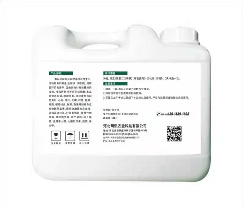 河北萌弘農(nóng)業(yè)科技有限公司是一家集研發(fā)、銷售、生產(chǎn)服務(wù)為一體推廣高新科技為主的綜合性企業(yè),目前主要從事高端液肥,葉面肥,沖施肥的研發(fā)生產(chǎn)和銷售。企業(yè)專注于作物增產(chǎn)的營養(yǎng)方案開發(fā),秉承讓作物營養(yǎng)科學(xué)規(guī)范之道,為農(nóng)業(yè)豐產(chǎn)助力。